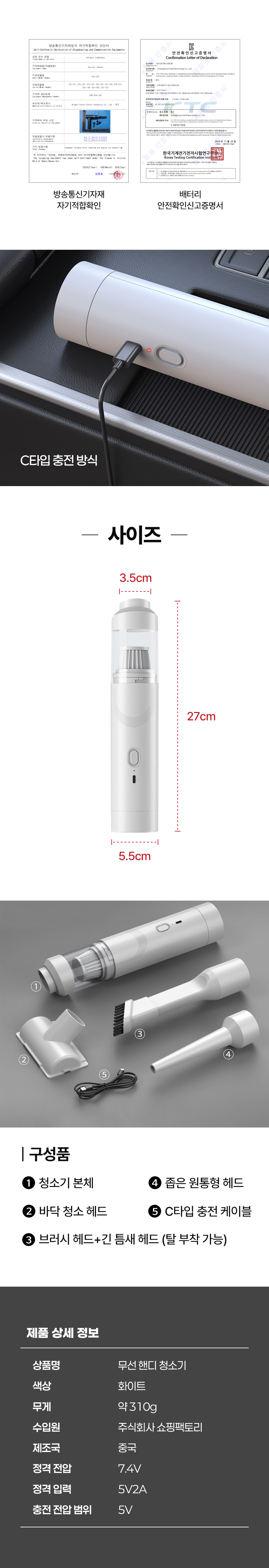 Á¤°ÝÀü¾Ð : 7.4V / Á¤°ÝÀÔ·Â : 5V2AÃæÀüÀü¾Ð¹üÀ§ : 5V |
